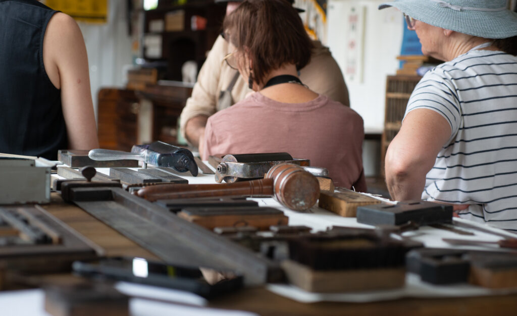 Over one hot, stormy Brisbane weekend, Moveable Type Studio partnered with bookmaker Michelle Vandermeer of Shelbyville Bookbinding to deliver a two-day workshop introducing participants to the slow, deliberate craft of letterpress printing and Coptic bookbinding. What unfolded was an ambitious, rewarding, and deeply hands-on experience that reminded all of us why heritage processes endure, and why they’re worth preserving.